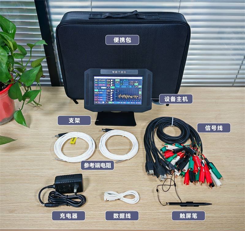 主機、USB拓展口、無線鼠標、充電器、8根信號轉接線、儀器便攜包