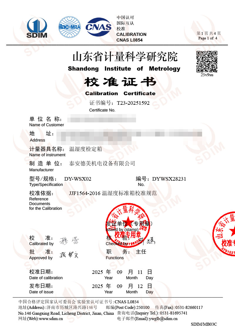 溫濕度檢定箱(-20-70℃)校準證書 2025-9-18 本文被閱讀 2329 次