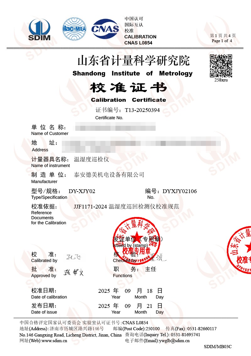溫濕度巡檢儀校準證書 2025-9-23 本文被閱讀 1477 次
