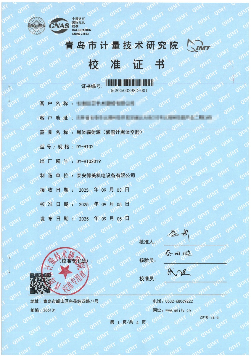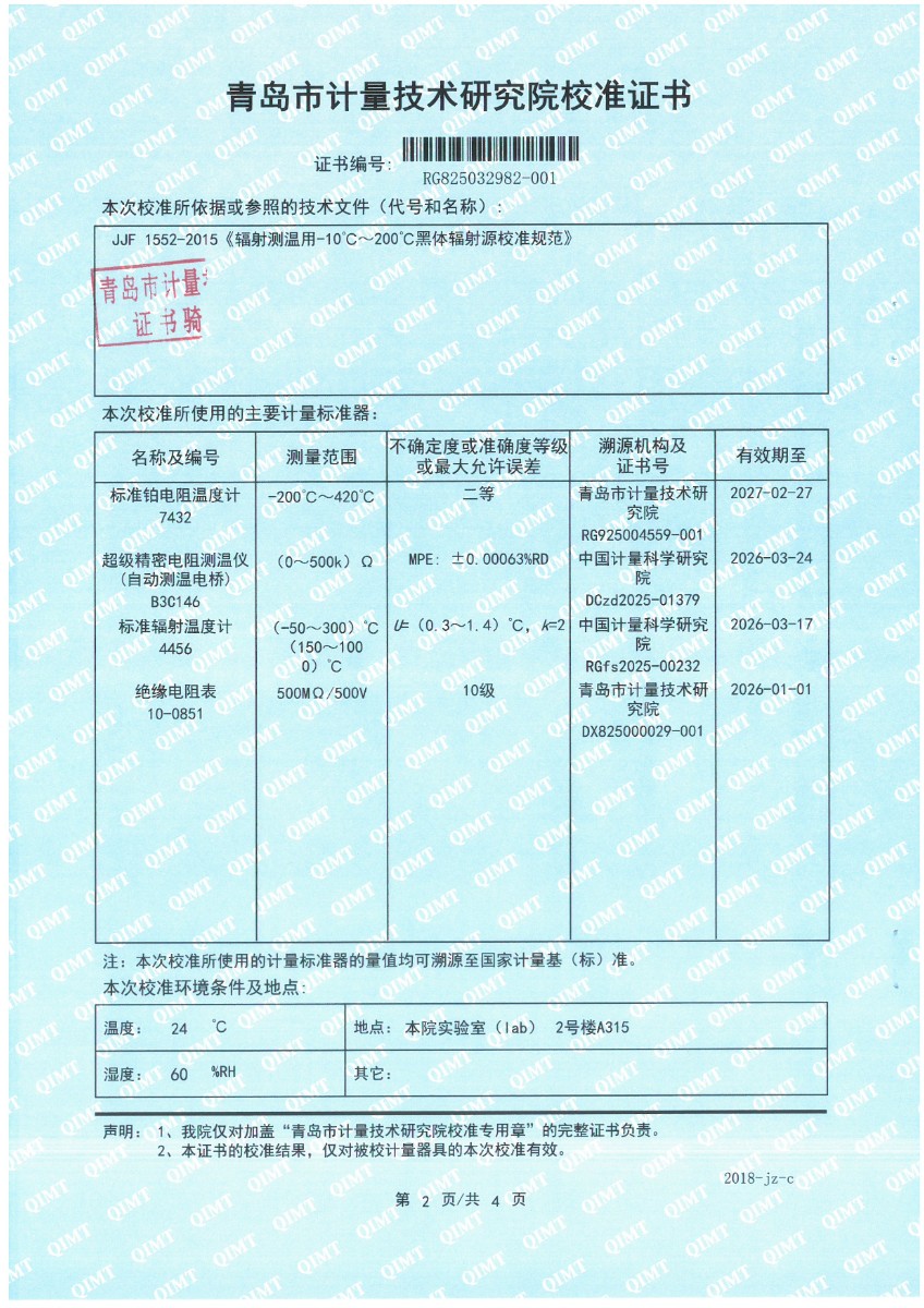 額溫計(jì)黑體空腔-校準(zhǔn)證書 2025-9-23 本文被閱讀 2117 次