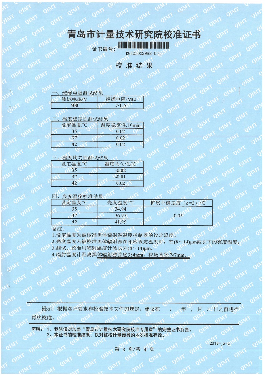 額溫計(jì)黑體空腔-校準(zhǔn)證書