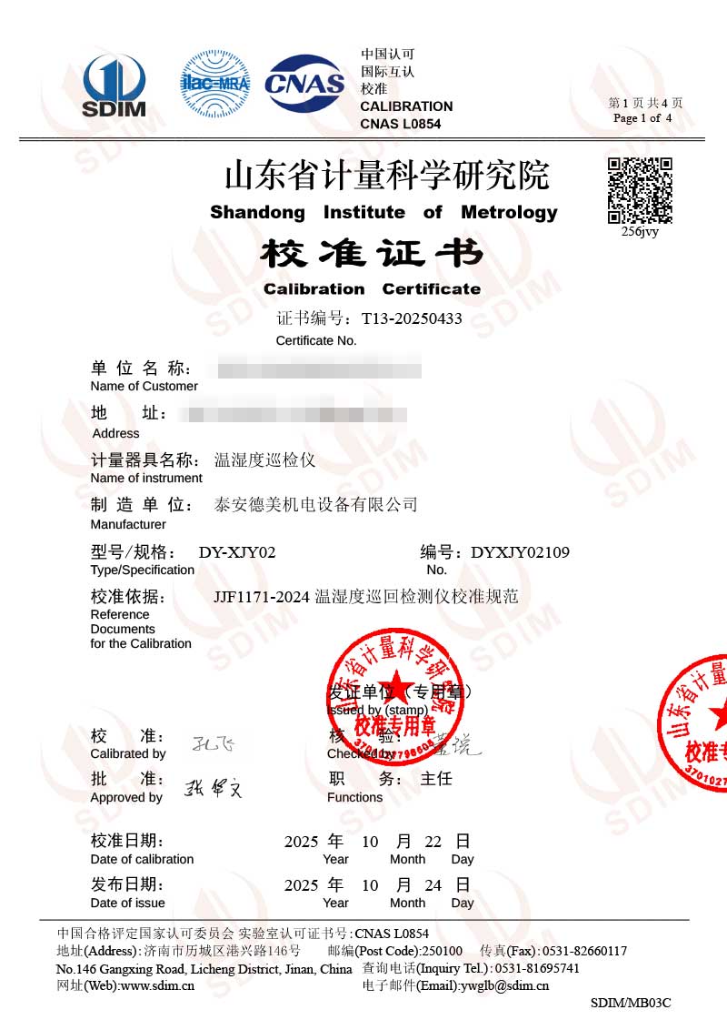溫濕度巡檢儀校準證書 2025-10-30 本文被閱讀 706 次