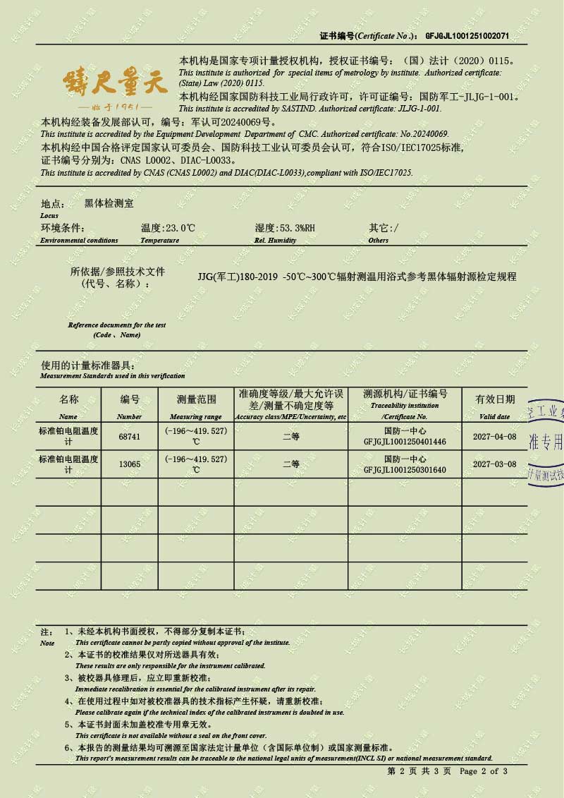 低溫液槽式黑體爐(-40-100℃)校準(zhǔn)證書 2025-10-30 本文被閱讀 722 次