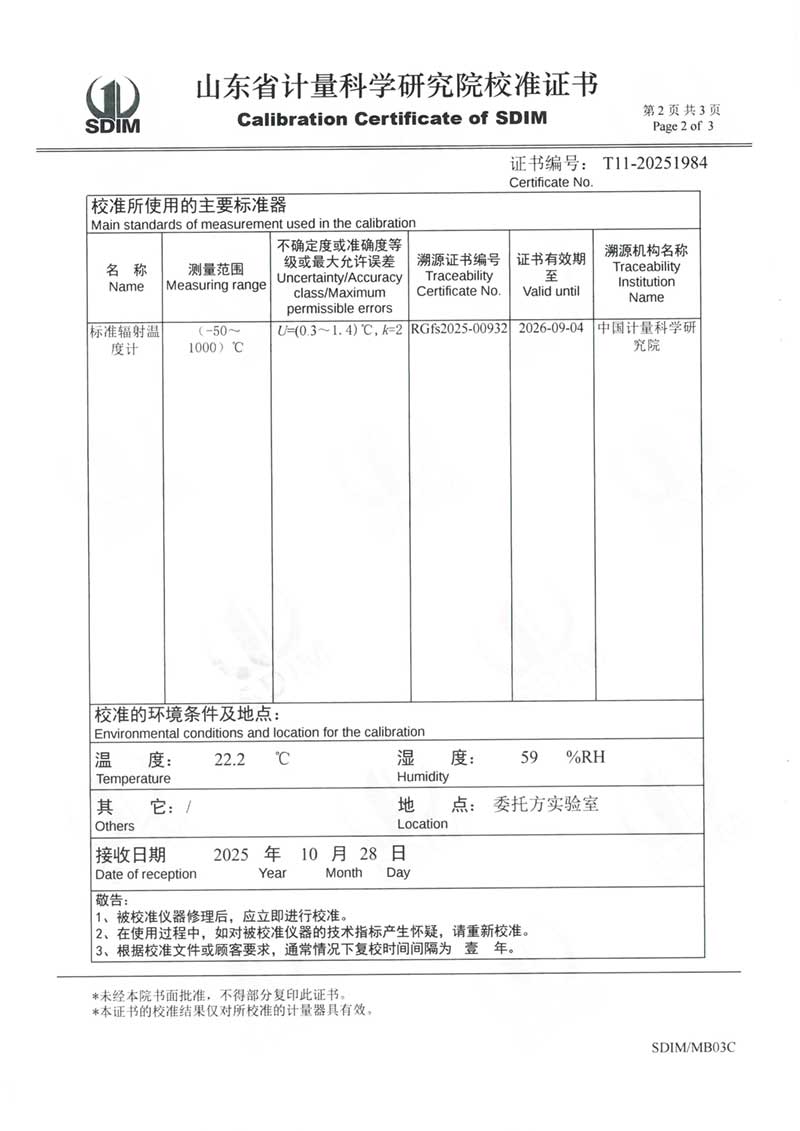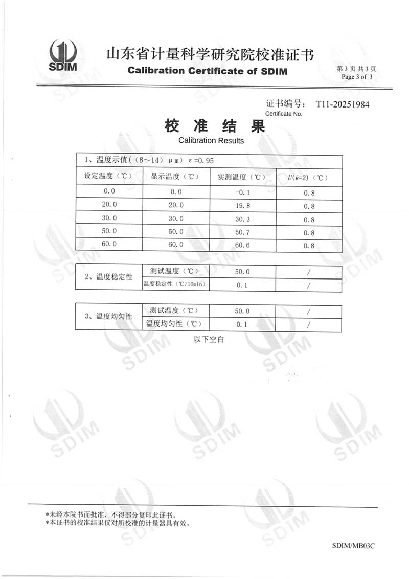 | 上一條:中溫黑體(室溫+5~400℃)校準(zhǔn)證書 | 下一條:智能干體儀(六位半精度)校準(zhǔn)證書 |