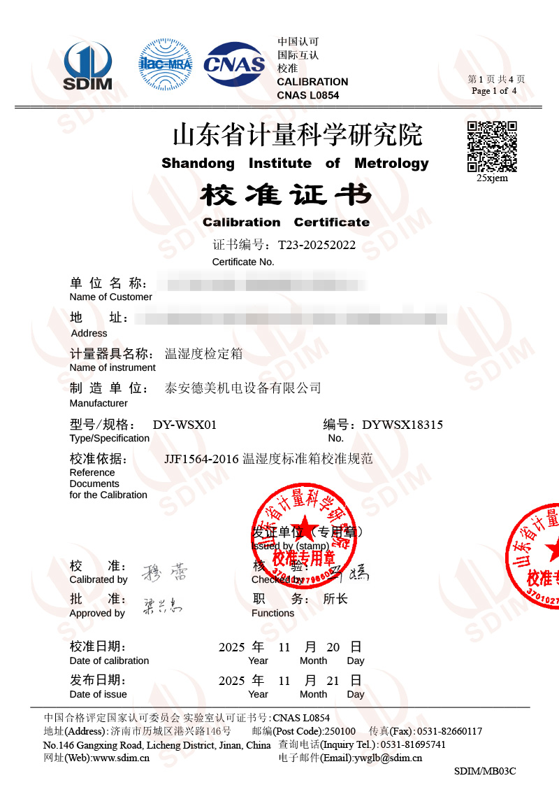 | 上一條:便攜溫度檢定箱(-30℃~50℃)校準(zhǔn)證書(shū) | 下一條:溫濕度檢定箱校準(zhǔn)證書(shū) |