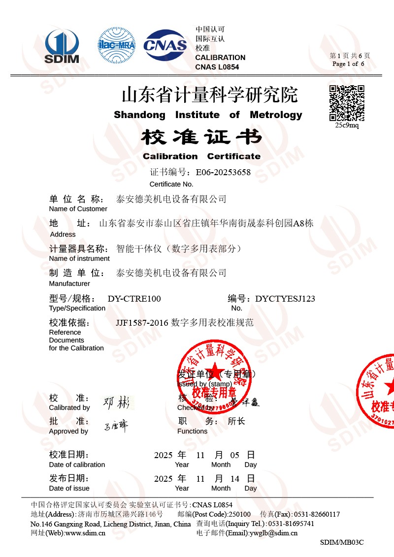智能干體儀(六位半精度)校準證書 2025-11-14 本文被閱讀 928 次
