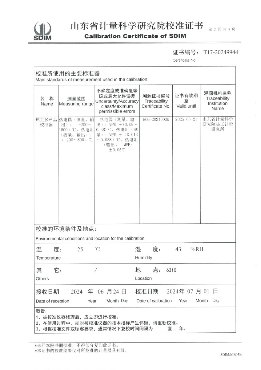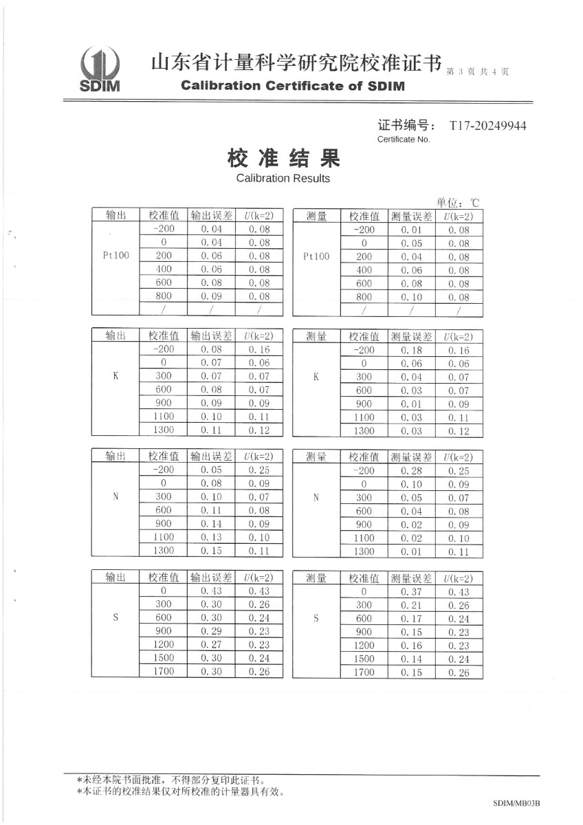 便攜式過程校驗儀(-200~1800℃)校準證書 2024-7-5 本文被閱讀 6343 次