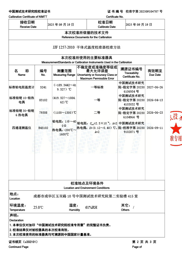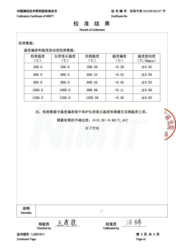 高溫干體爐(300-1200℃)校準證書 2025-9-22 本文被閱讀 1544 次