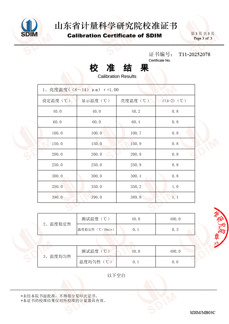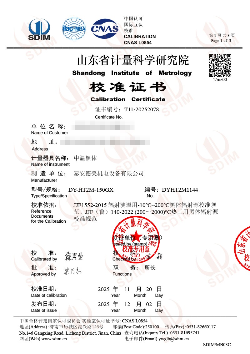 中溫黑體校準(zhǔn)證書 2025-12-4 本文被閱讀 422 次