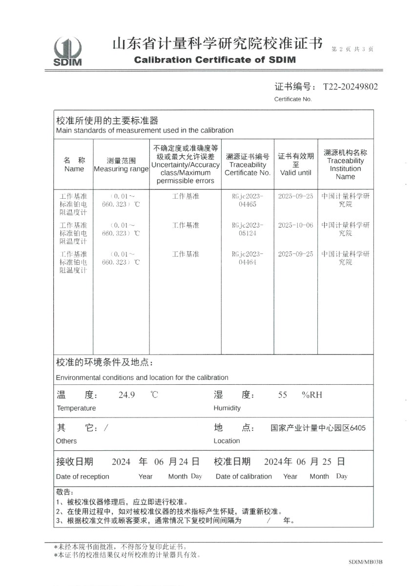 上一條:高精度數字溫度計(30~150℃)校準證書下一條:高精度制冷恒溫槽(-80~100℃)校準證書