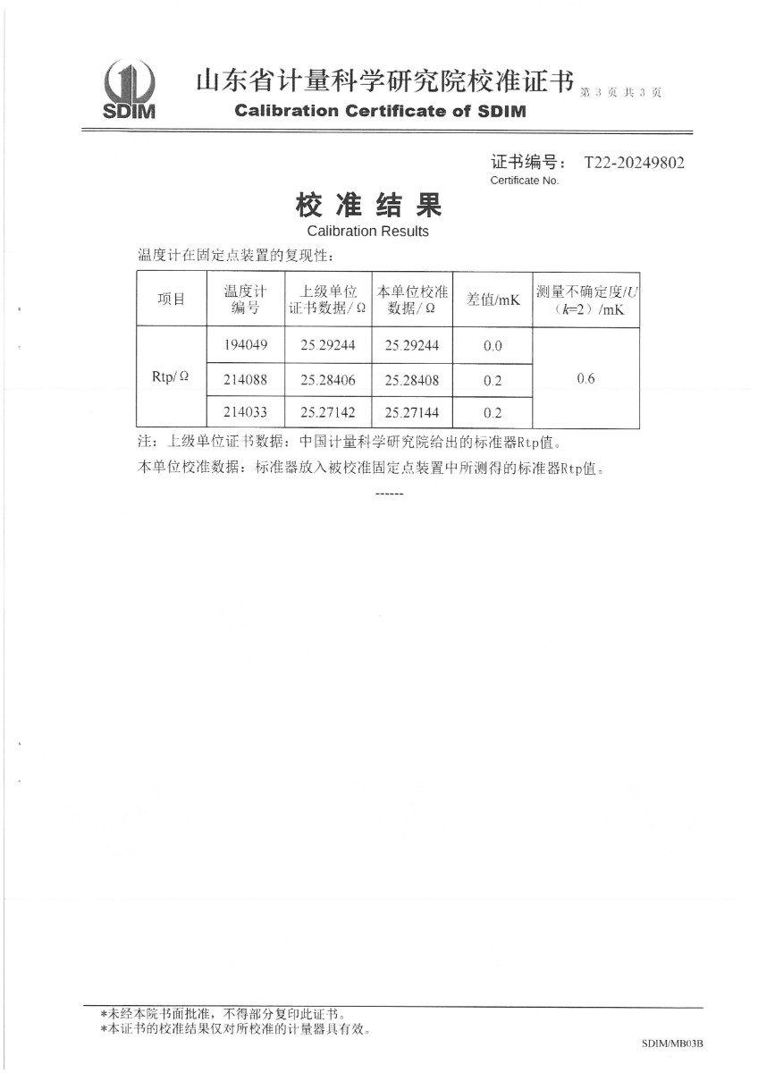 水三相點瓶校準證書 2024-7-5 本文被閱讀 6507 次