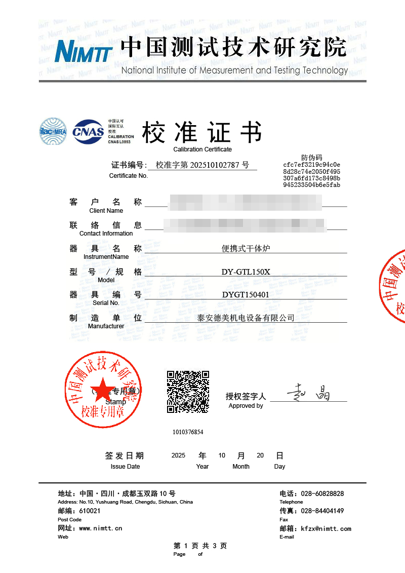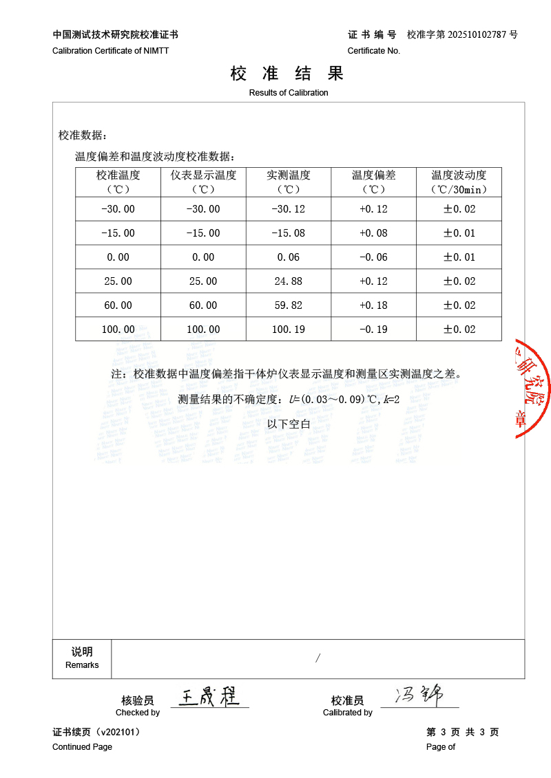 | 上一條:超低溫面源黑體爐(-40-80℃)校準(zhǔn)證書 | 下一條:智能干體儀(六位半精度)校準(zhǔn)證書 |